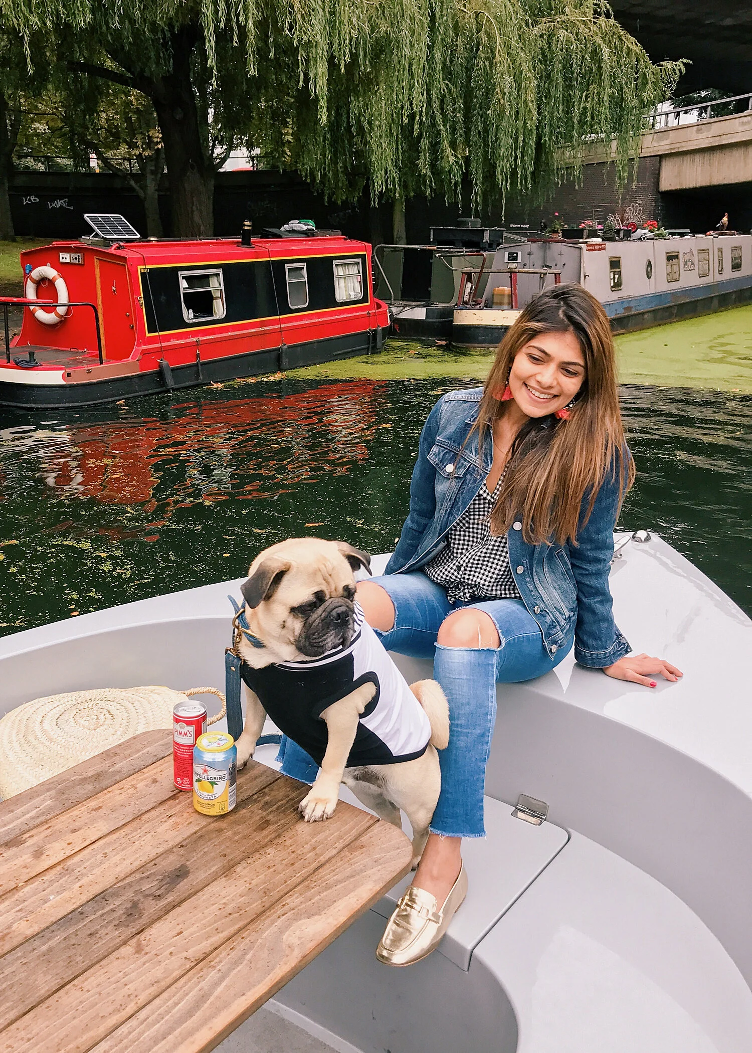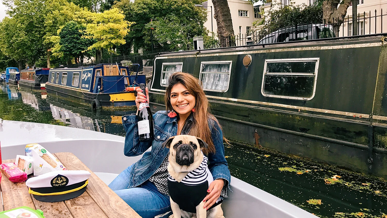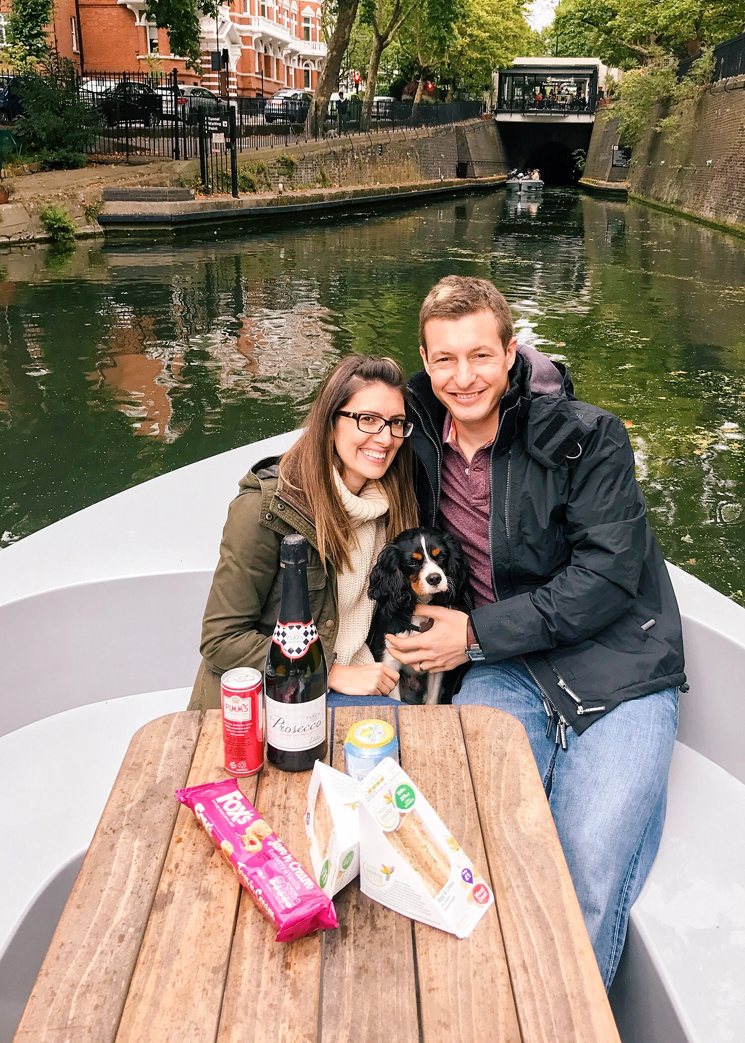 Over the weekend, we got invited by Go Boat London to try one of their dog friendly self-drive boats. Its the first and currently the only self-drive boating service in London. Since we had never quite explored the London canals before, we jumped at the opportunity. Each boat accommodates up to eight human/hounds. So we decided to invite our friends along with their one year old pup Dash and made a proper picnic out of it. We brought along some bubbly and plenty of snacks for both humans and hounds. (There is some alcohol restriction, which can be found on their website.)