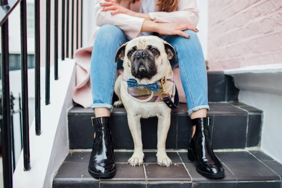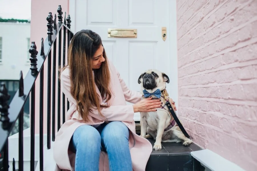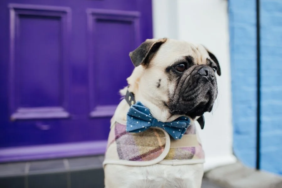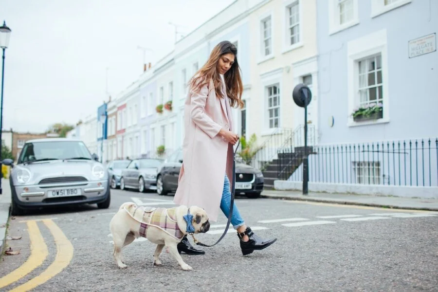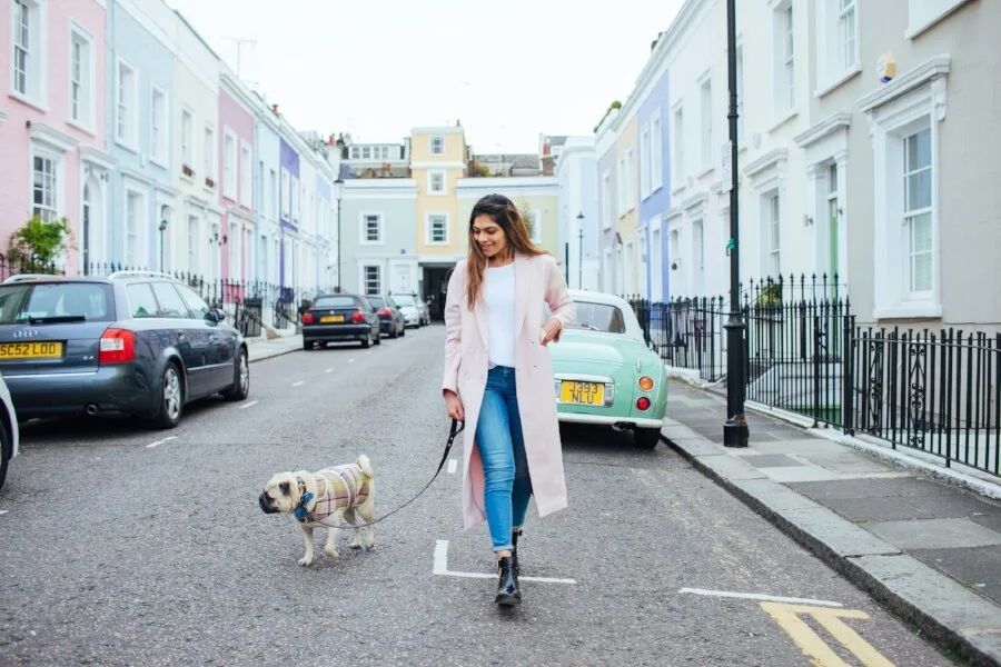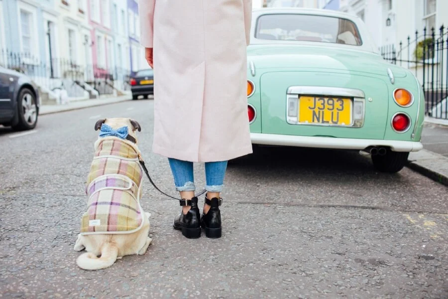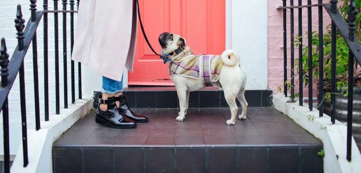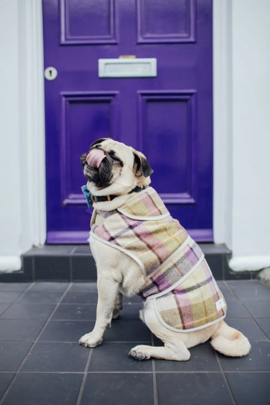 Pastels in pink and other colours have been all over the catwalks for AW16. Looks like these are not just summer colours anymore. Create interesting fall looks by combining pink coats with accessories in shades of metallic, burgundy or other darker colours. I decided to combine my pink coat with flat black ankle boots to toughen it up a bit. Ari's winter coat from Hettie & Co in mixed shades of pastels and neutrals completed our human and hound look.