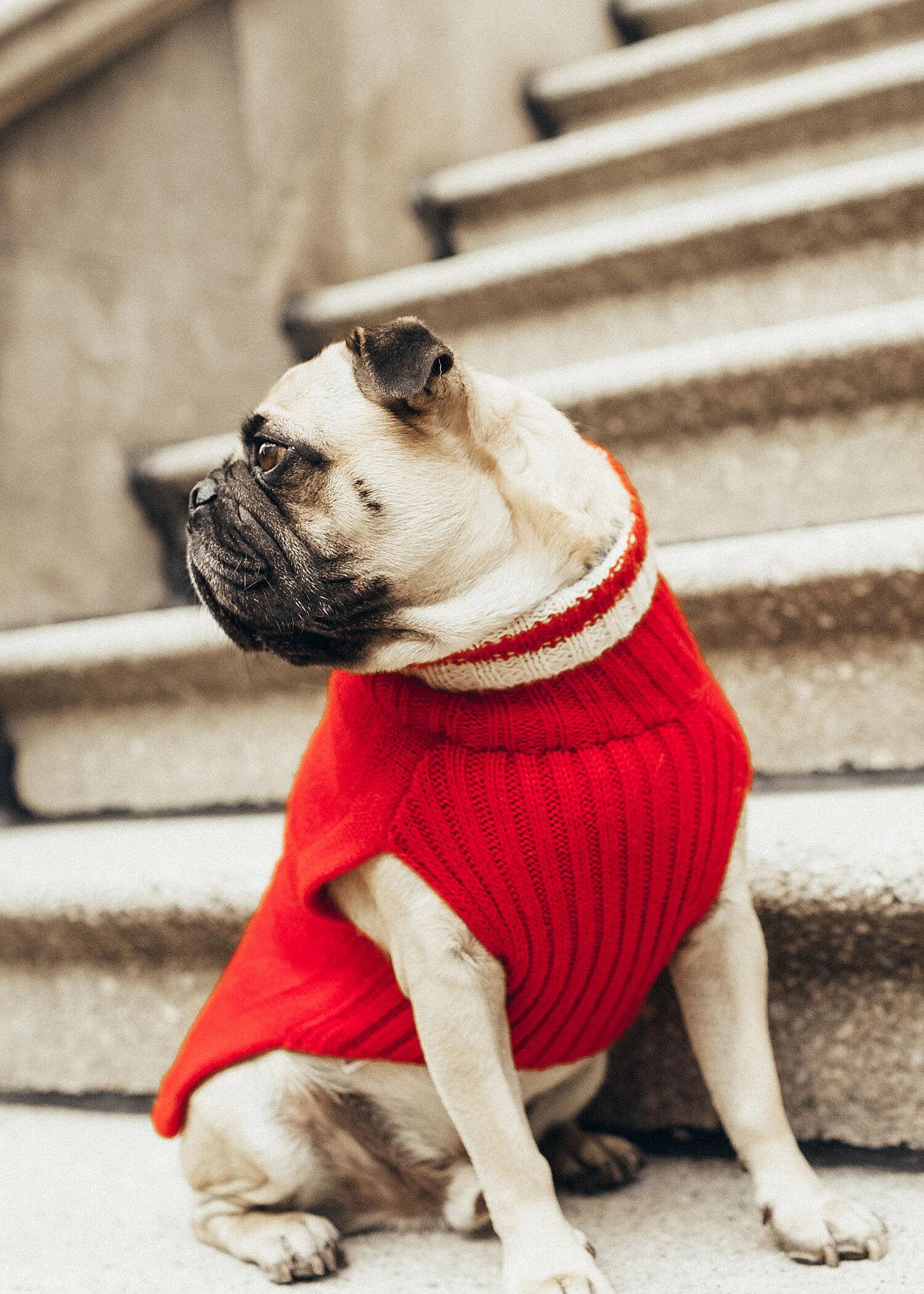 Ari and I, both love discovering new independent pet brands from around the world. So when Patricia, the founder of Peruvian brand - Alqo Wasi, approached us to try their Alpaca wool hand knitted products, we were very excited. To match in our signature twinning style, we picked their varsity cable pullover for Ari and a beanie for me. Red is huge this fall and we can't get enough of it. We wore this look for our Sunday morning stroll in Central Park, and like always, Ari got a lot of attention and compliments on his outfit. All in all, Alqo Wasi products are beautifully made and super trendy to wear.