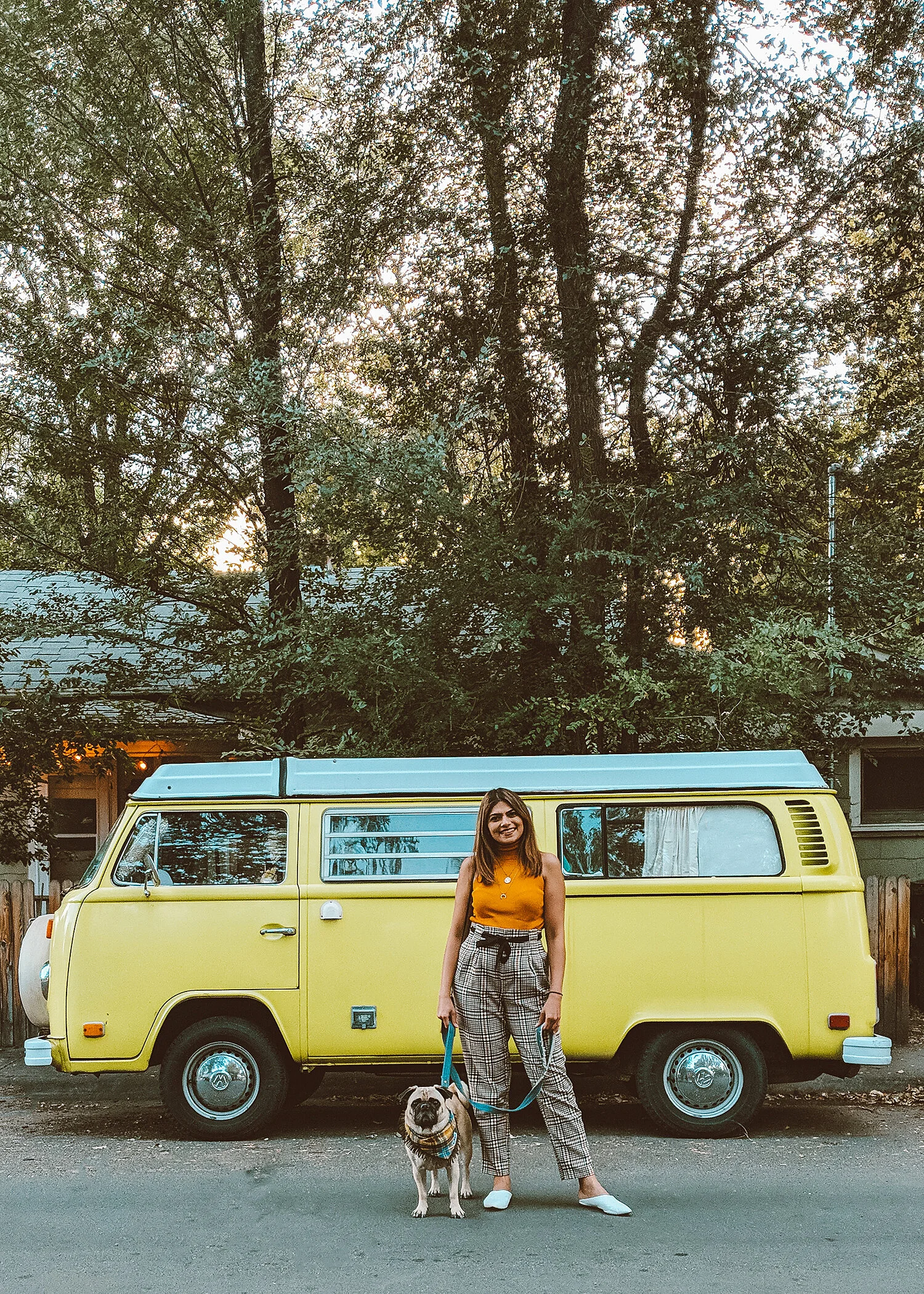 After an early dinner, we checked out some of the shops on Pearl Street and stumbled upon Peace, Love & Chocolate. Lots of interesting flavors and and plus they had outdoor dog friendly seating. Overall Pearl Street had a great vibe in the evening with band playing live music, it was great to walk around or just sit on a bench and watch. We explored the neighborhood around Pearl Street. Saw some cute houses and even found a Yellow VW Camper Van. Of course, we had to get a pic ;)