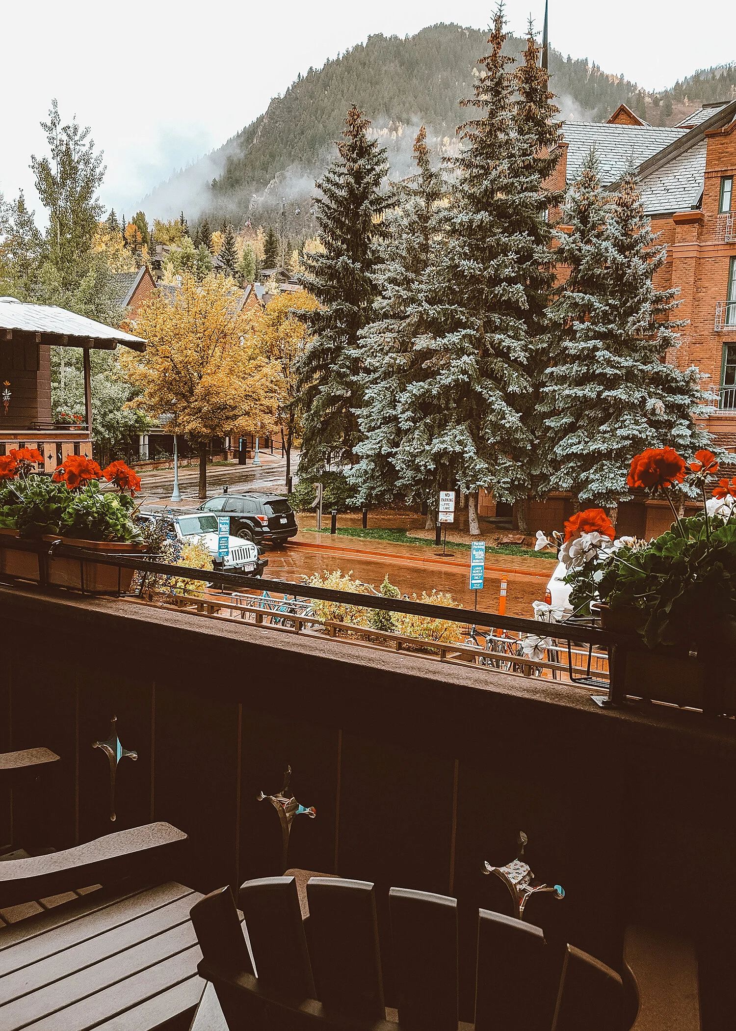 It was Sunday afternoon and the vibe was amazing. Cool crisp fall weather with leaves falling from the trees and people sitting outdoors having brunch. We ate at Red Onion where they had a pretty big dog friendly outdoor section and the Black Bean Burger was delish! After lunch we checked into our hotel Mountain Chalet Aspen . Our room was clean and comfortable with a balcony and gorgeous views of the mountains. The hotel turned out to be great value for money as it was centrally located (right next to St. Regis Aspen) and breakfast was also included.