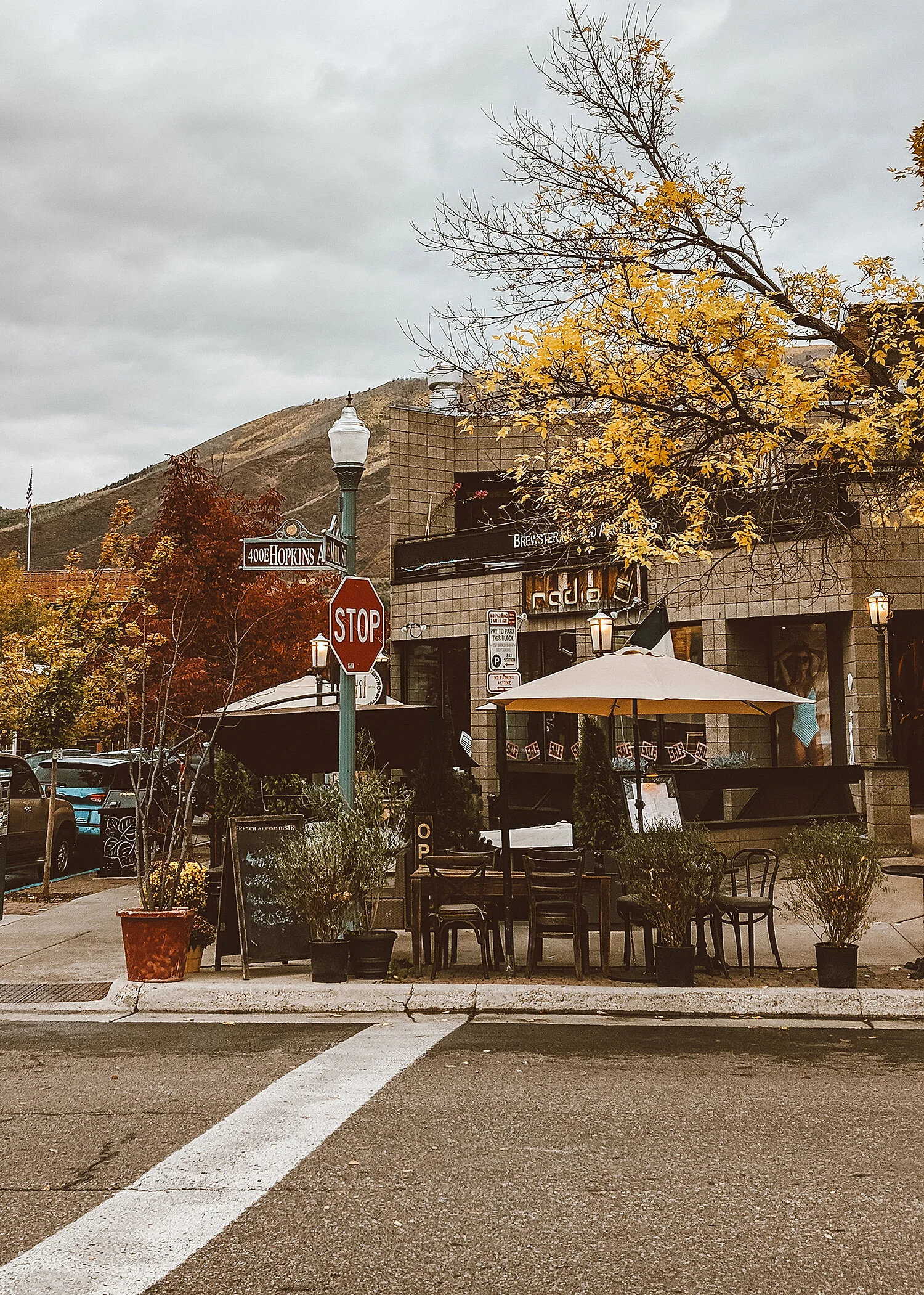 After breakfast, we headed to Aspen, which was just a 30 minutes drive from the ranch. Once again the drive was scenic and filled with gorgeous fall colors. We arrived at our hotel but were quite early for check in, so we decided to explore and get lunch. We walked around the city which was filled with cute houses and fall colors, gorgeous views of the mountains from everywhere and plenty of IG photo ops ;) As a dog mom, there was something else that stood out to me. There were biodegradable dog poop bag stations all around the town, so if you forgot to carry a bag, you can just pick up one for free, isn’t it perfect!