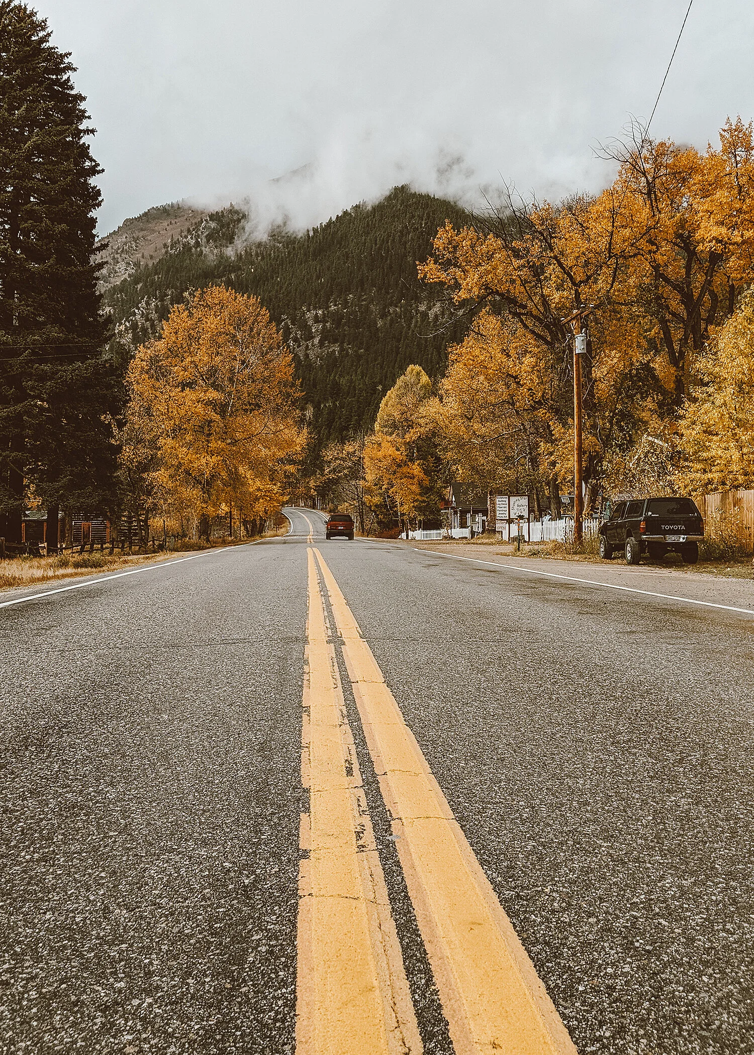 We started the day with breakfast on our patio and walked around the farm. It had such a nice peaceful vibe in the morning, very therapeutic to be around all the animals. We asked Pam for suggestions on things to do that day. Its always good to get a locals opinion and perspective. She suggested visiting Redstone, a cute little town about 30 minutes drive away. We saw some gorgeous fall colors on the way! The mountains seemed like they were covered in an orange carpet. The road was flanked by stretches of yellow trees on both sides. Nature was literally on fire - yellows, oranges and reds all around us. On the way we stopped for photos and soaked in the stunning views. You could even go for a dip in one of the natural hot springs, which we skipped as it was quite hot that day. The temperature difference between day and night was something we had never experienced before. The highs were 85°f whereas the night temperature dropped to almost 30°f. Luckily we had carried the right mix of clothing with plenty of layers.