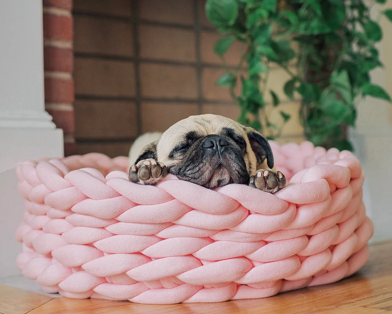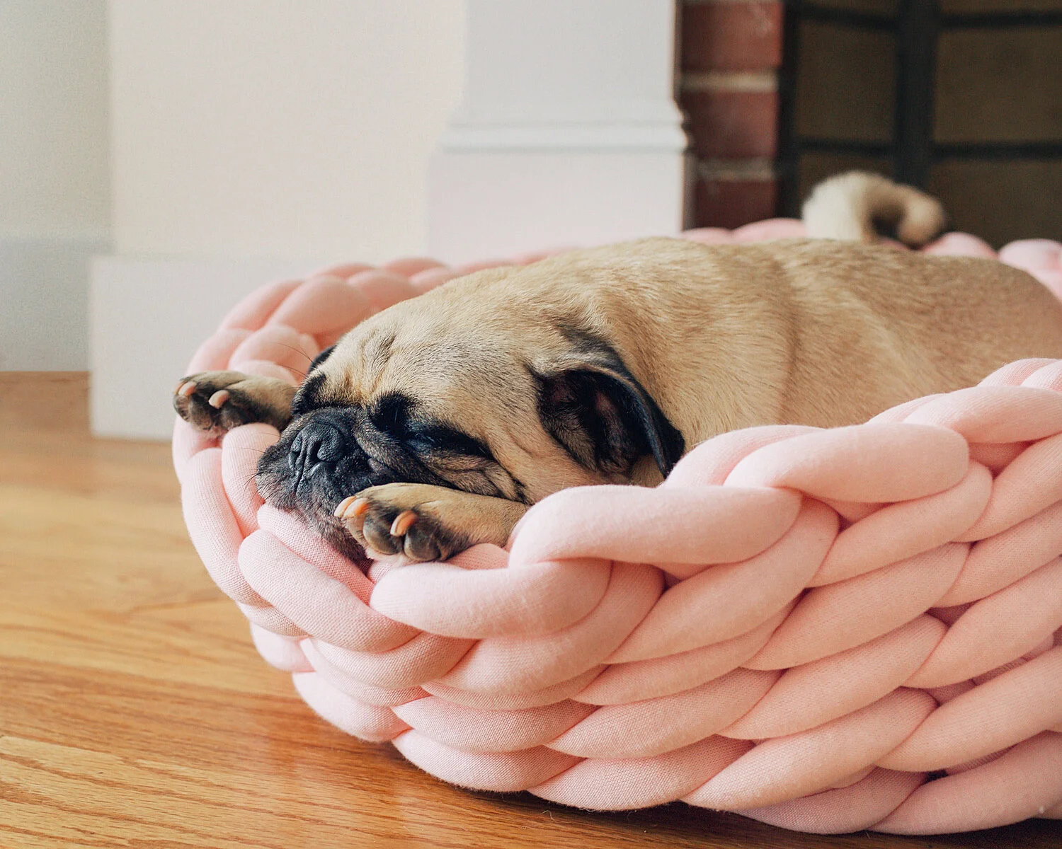 Since a while, I have been on a lookout for dog bed, which is both great looking and comfortable. Ohhio dog bed definitely stood out because of its unique design. The entire bed has been handmade using cotton tubes filled with hollow fiber making it super soft and cozy. When the bed first arrived, Ari was a little skeptical like he is about anything new. But, once he got into the bed, I think he realized his dreams had come true ;) Anyone who has a pug knows that they love a good chin rest. The edges of Ohhio bed are perfectly raised for Ari to lay in there, rest his chin, watch everything around him and just chill. I also noticed that when he did not want to be disturbed and was sound asleep, he would just bury his face in the bed. Its like a ‘do not disturb’ sign. Usually dog beds turn out to be an eyesore in the living room, but this bed looks so pretty and in fact adds to the overall aesthetic. One of the things that I really like about the bed apart from the design, is the fact that its washable, makes life so much easier for us dog moms.